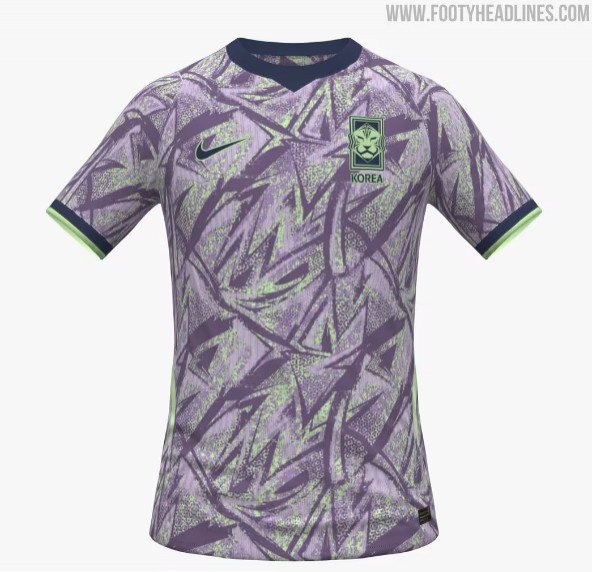 韩国队新款客场球衣将采用大胆的紫色和青柠色组合,搭配深色作为对比和亮点,预计这款球衣将于2026年3月或4月发布。